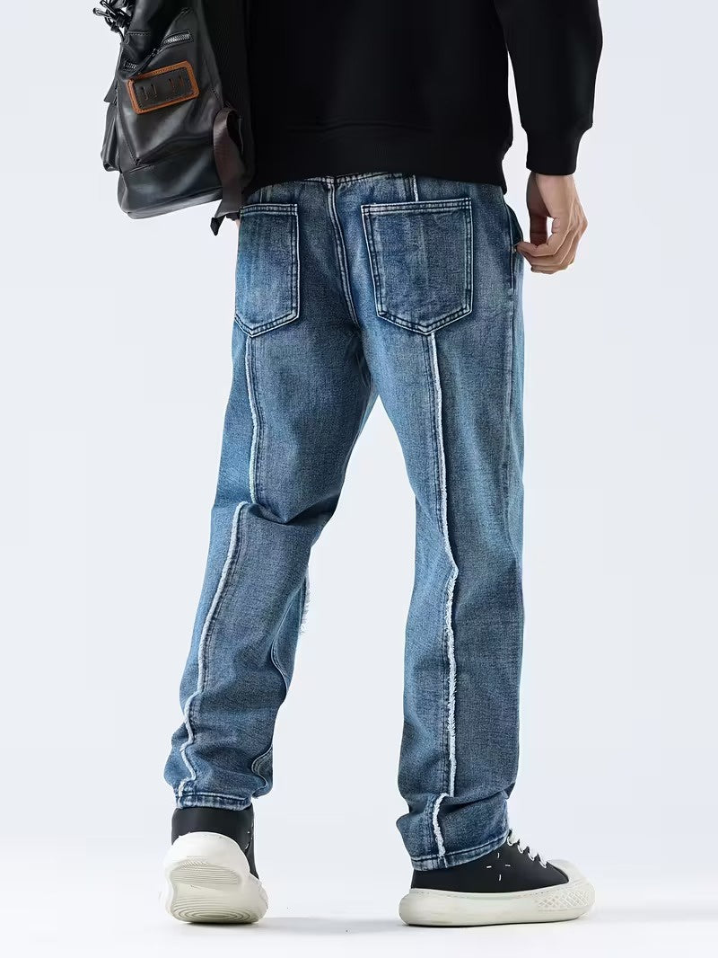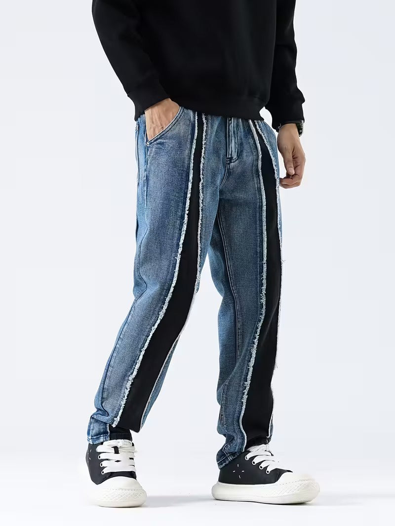 FM- V3 Men’s Denim Pants with Frayed Stripes